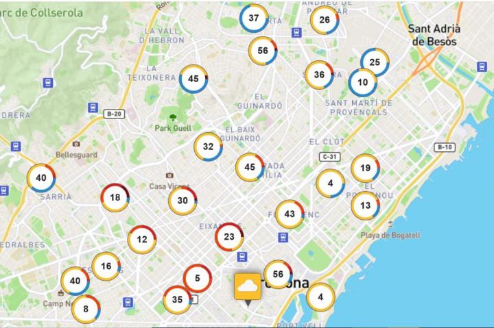 The results of the research show a wide and representative distribution of nitrogen dioxide concentration levels of the city regarding population density. The study analysed very high levels, with an annual average of 49 μg/m3, above the thresholds of the European directive and the WHO, which are 40 μg/m3. More than 5% of the samples double the threshold value of 40 μg/m3, thus confirming that air quality is a serious problem in Barcelona. The measured levels also show large differences between districts and within the same district, depending on the street. The average values obtained in Ciutat Vella, Sants / Montjuïc, Les Corts and Horta / Guinardó by xAire are particularly worrying, as they are higher than those of the nearest official stations.