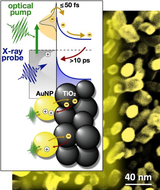The team then used short X-ray pulses to measure how many of these electrons "traveled" from the AuNP to the TiO2 to form electron-hole pairs, and then back "home" to the holes in the AuNP.