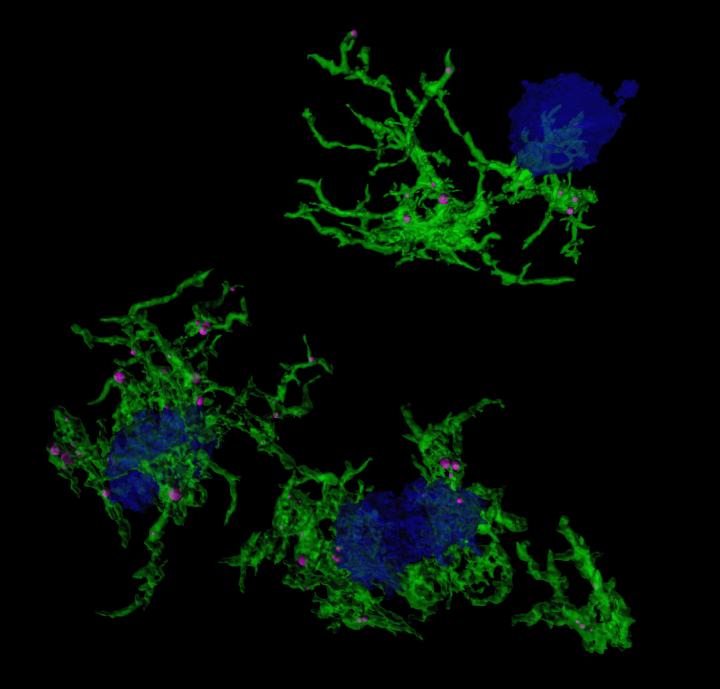 The team did this by using a stain, called methoxy-XO4, that specifically targets microglia that have engulfed amyloid plaques. They used the stain in preclinical models of Alzheimer's disease and then examined gene expression in the stained microglia. They investigated differences in gene expression underlying microglia's ability to ingest particles (e.g. amyloid plaque) and identified associated regulatory molecules.