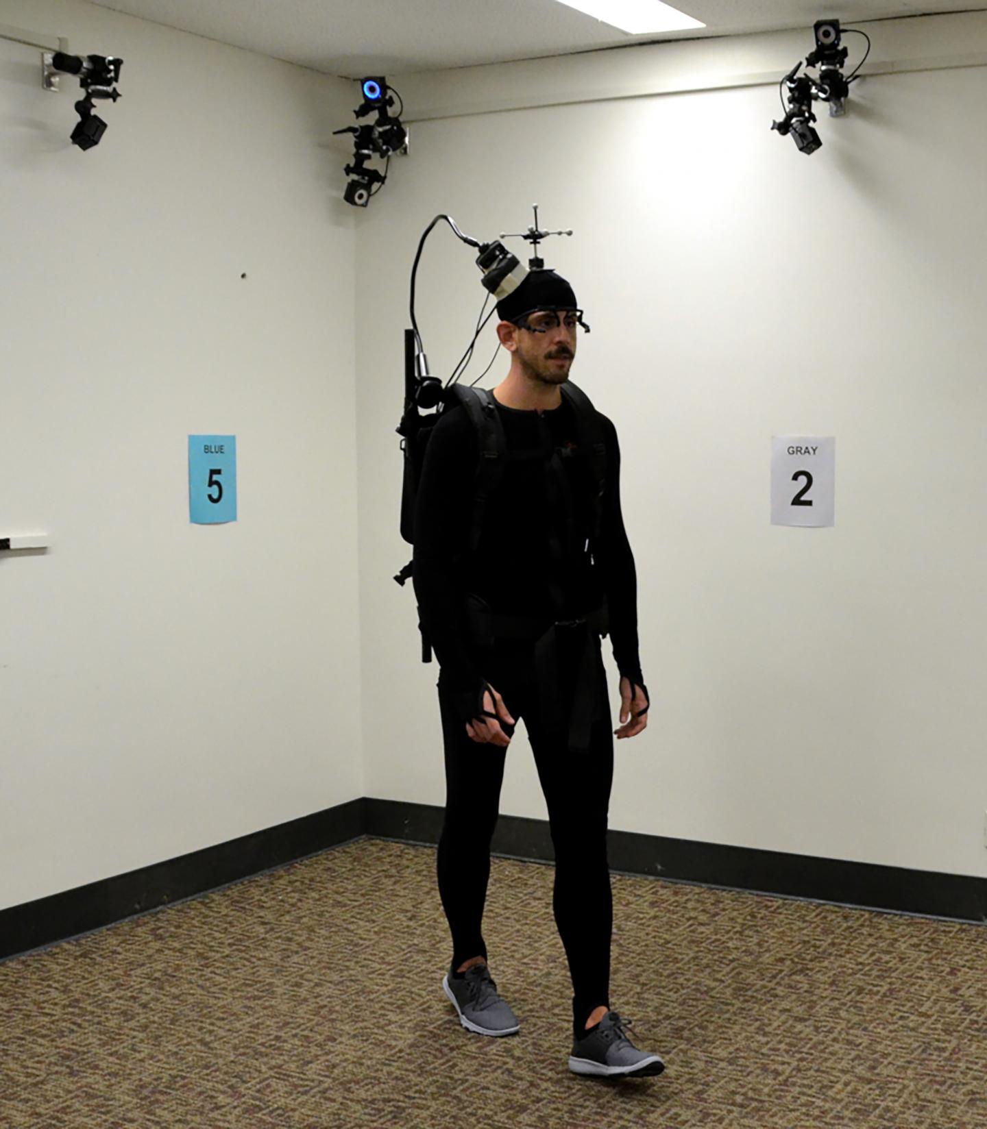 image: Scientists used a special backpack to study for the first time how a person's brain navigates space and tracks the location of others. The study was funded by the NIH's BRAIN Initiative.