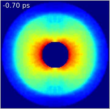 The peculiar features of quantum mechanics can be seen in several of the movie´s many images, in which the molecule does not simply point in one direction, but in various different directions at the same time - each with a different probability (see for example the 3 o´clock position in the figure). "It is precisely those directions and probabilities that we imaged experimentally in this study," adds Rouzée. "From the fact that these individual images start to repeat after about 82 picoseconds, we can deduce the period of rotation of a carbonyl sulphide molecule."