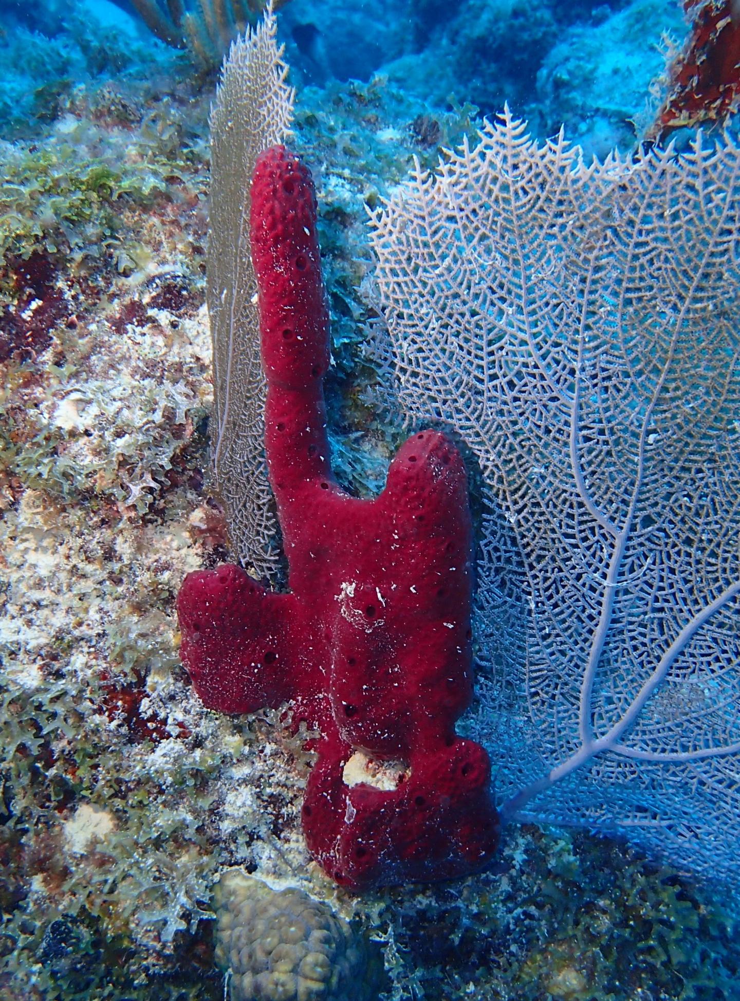 image: A red sponge, Amphimedon compressa, one of two of the sponge species from which the scientists developed the cell cultures.
