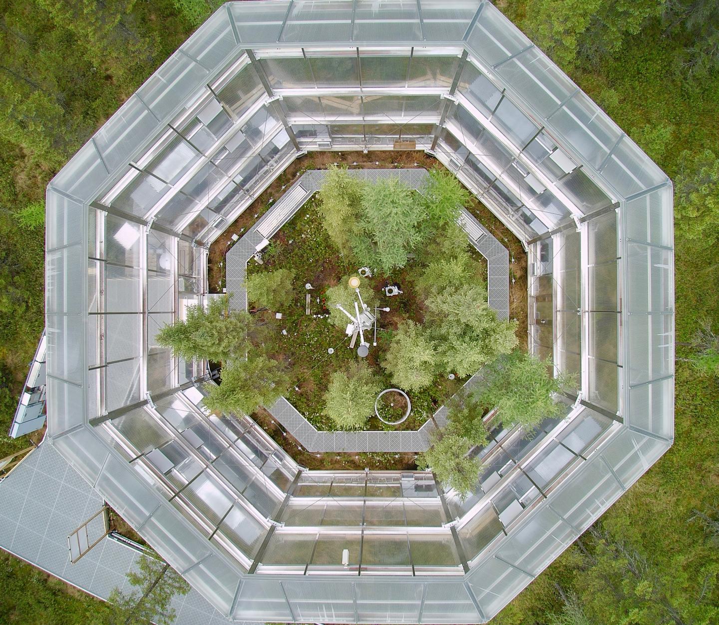 image: The Spruce and Peatland Responses Under Changing Environments project uses a series of enclosures to expose peatland plots to elevated carbon dioxide and temperatures.
