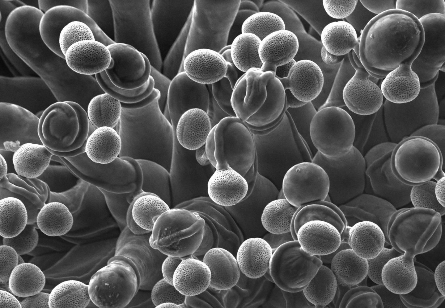 image: Pollen grains deposited on receptive papilla cells lacking KATANIN.