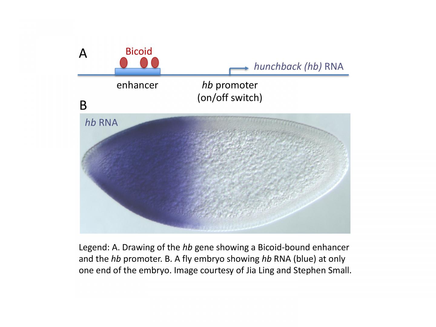 Small and his colleagues took advantage of a characteristic of the hb gene to help illuminate this process: the gene has two promoters, an active one that responds to Bicoid and an inactive one that does not.