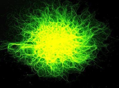 To study how nerve cells respond to injuries in their branches, Washington University researcher Valeria Cavalli grows them in "spots" like the one shown above. Cavalli recently identified a chain reaction that enables repair of these branches when they are cut.