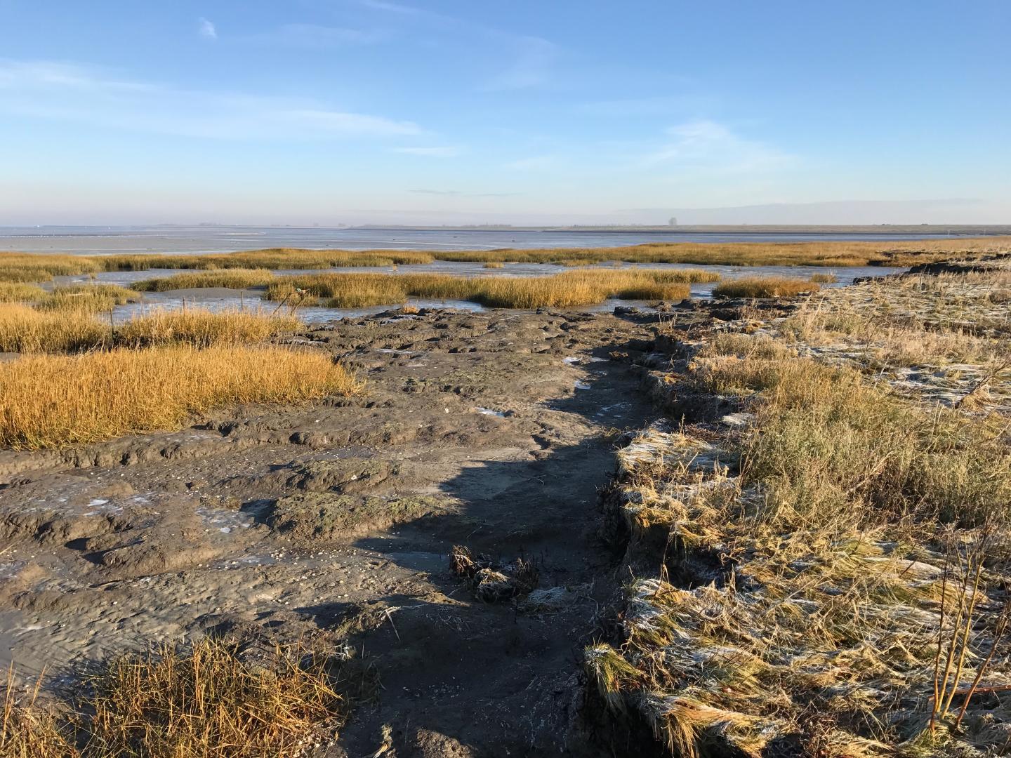 Marsh loss often takes place when waves erode the seaward marsh edge. Sea level rise is expected to increase such erosion by allowing stronger waves on neighboring tidal flats due to raised water depth. While a healthy marsh can recover the lost land via plants recolonizing the bare tidal flats, waves enhanced by sea level rise can greatly slow down or even block such recovery by hampering seed establishment. "A few cm increase of wave height can double the time needed for vegetation recovery on the tidal flats", says Zhenchang Zhu, the leading author of this paper, who conducted this research at NIOZ, but is currently working at Guangdong University of technology, China. "This is problematic as sea level rise may speed up marsh erosion meanwhile limiting its recovery. In the long run, this can cause big loss in marsh extent and key ecosystems services humans rely on, such as coastal defense", Zhu continues.