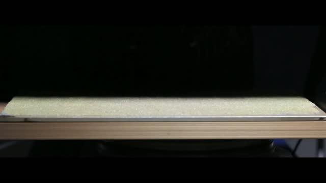 video: The self-propelling Rollbot begins as a flat sheet, about 8 centimeters long and 4 centimeters wide, and curls into a pentagonal wheel when placed on a hot surface. Hinges embedded on each of the five sides of the wheel folds when in contact with the surface, propelling the wheel to turn to the next side. As the hinges roll off the hot surface, they unfold and are ready for the next cycle.