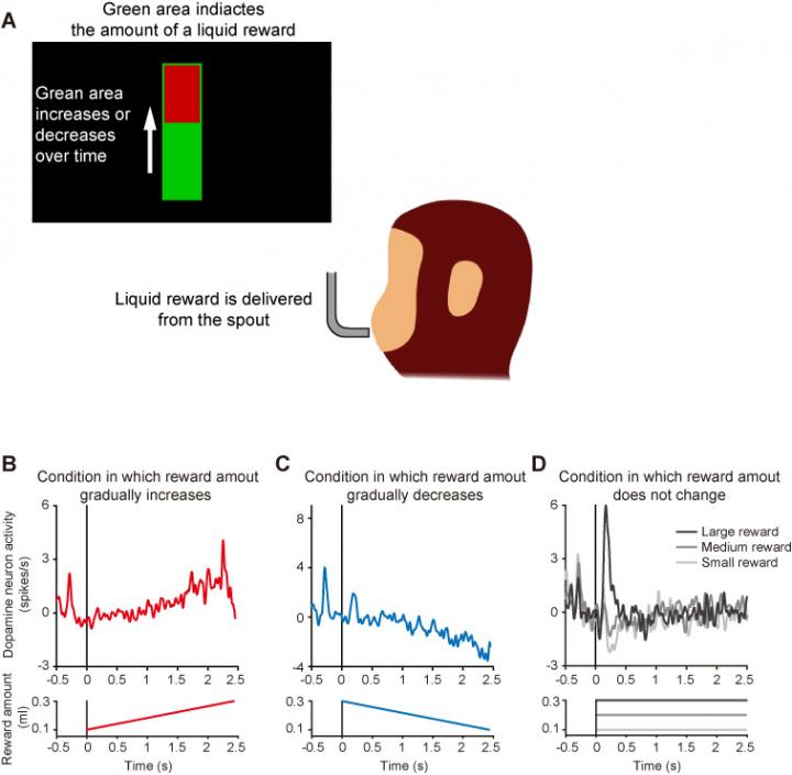 image: Researchers from the University of Tsukuba have found that that during the processing of rewards that change in value over time, dopamine neurons exhibit a pattern of neuronal activity that is distinct from previously established neuronal firing related to reward prediction. This work opens the door for future research regarding the way in which rewards are processed, and more broadly, the way that dopamine neurons process information in real-time.