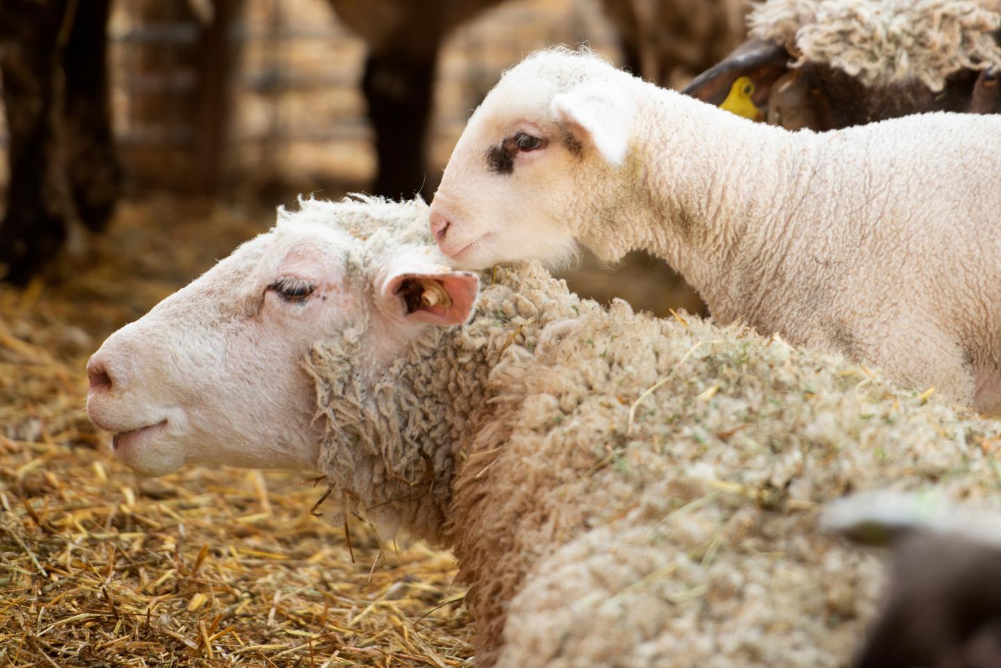 image: A lamb and ewe at the UC Davis Sheep Barn. Ruminants such as sheep, goats, cattle and deer are among the most successful and widespread groups of mammals. A new study of genomes of 44 wild and domesticated ruminants sheds light on their evolution and success, especially their unique digestive system.