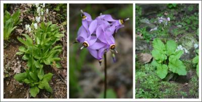 A study of two rare species of shootingstar that grow in cliff habitats, the jeweled shootingstar (middle) and Frenchs shootingstar (right) asked whether these are true species, glacial relicts now confined to refuge habitats, or variants of the widespread Meads shootingstar (left) that adapted to the cliff microclimates.