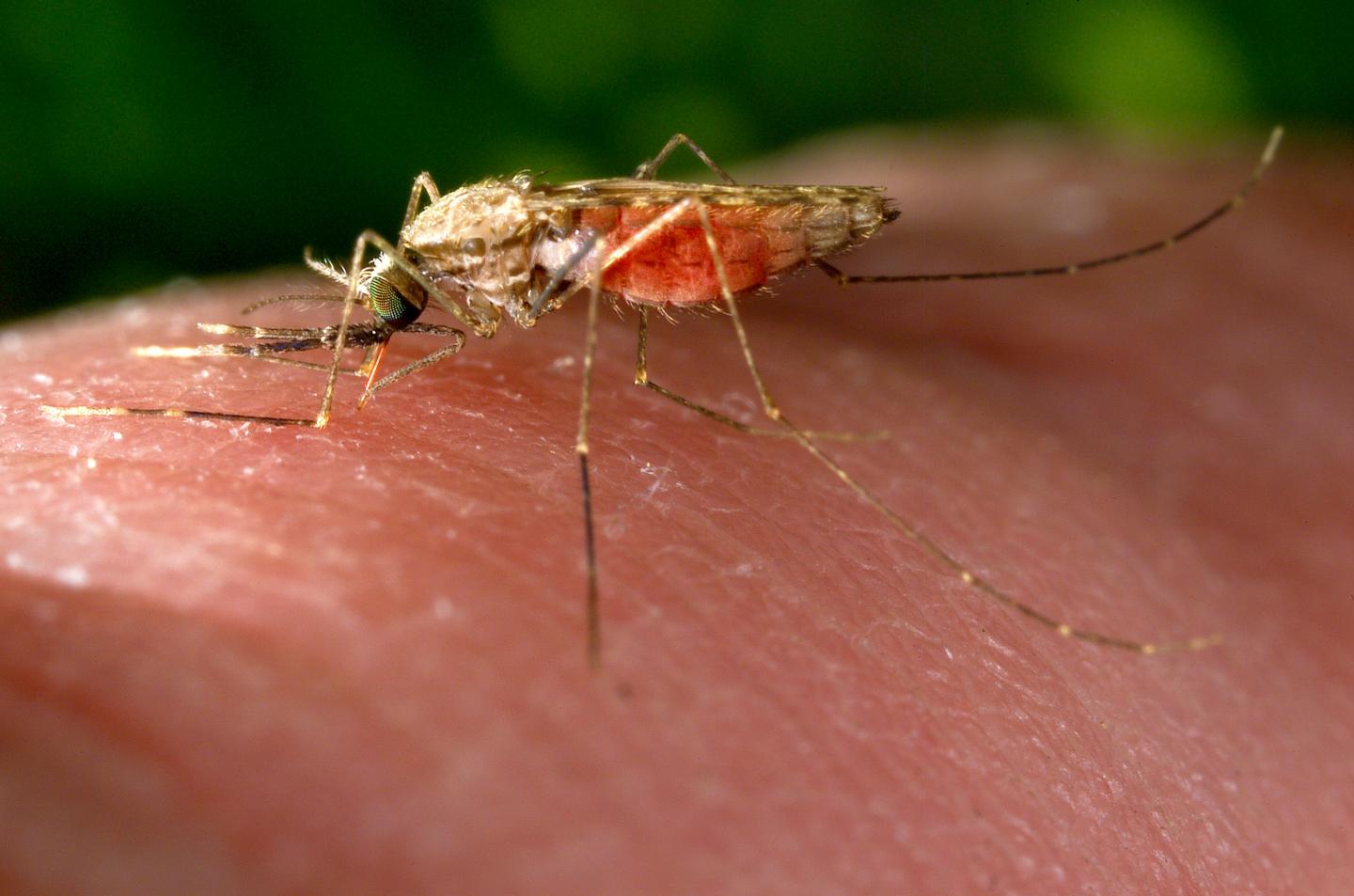 image: An Anopheles gambiae mosquito has a blood meal as it feeds on a human host