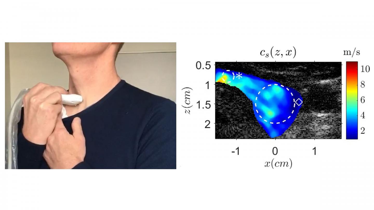 When a person sings, the vibrations from their voice create waves in the tissue near the vocal tract called shear waves. If a tumor is present in the thyroid, the elasticity of its surrounding tissue increases, stiffening, and causing the shear waves to accelerate.