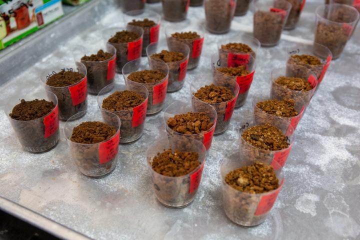 image: Even small soil samples contain vast numbers of microorganisms. Soil samples from different layers of soil wait to be analyzed in staff scientist Ben Turner's lab at the Smithsonian Tropical Research Institute in Panama.