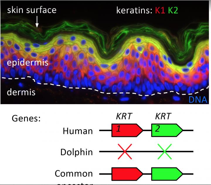 "It is surprising that the main proteins of the outermost skin layers of terrestrial mammals, including humans, are dispensable in aquatic mammals, such as dolphins, whales, and manatees," said Eckhart. "And it is remarkable that a stress response program was the starting point of an evolutionary innovation: the new architecture of the epidermis in aquatic mammals."