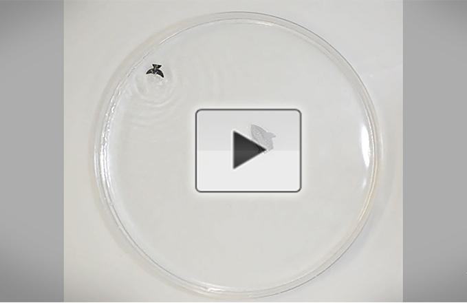 The researchers made swimmers that were 2 cm long (about the width of a human finger) in the shape of a fish that contained a conductive bottom layer; a rigid, hydrophobic middle layer; and an upper strip of aligned, strongly magnetic microparticles. The team added platinum to the tail, which reacted with hydrogen peroxide fuel to form oxygen bubbles that propelled the robot. When the researchers placed a swimmer in a petri dish filled with a weak hydrogen peroxide solution, it moved around the edge of the dish. Then, they cut the swimmer with a blade, and the tail kept traveling around until it approached the rest of the body, reforming the fish shape through a strong magnetic interaction. The robots could also heal themselves when cut into three pieces, or when the magnetic strip was placed in different configurations. The versatile, fast and simple self-healing strategy could be an important step toward on-the-fly repair for small-scale swimmers and robots, the researchers say.