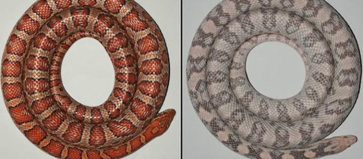 The skin of corn snakes (Pantherophis guttatus) has an orange base, decorated with red dorsal and lateral spots circled in black. The spe- cies can undergo mutations that lead to variations in skin colour, with the lavender corn snake being pink with grey spots. The experiments carried out by Athanasia Tzika, a researcher in the Department of Ge- netics and Evolution in UNIGE's Faculty of Sciences and her doctoral student Asier Ullate-Agote have identified that these altered colours are due to a single mutation pinpointed in the LYST gene, a gene that regu- lates lysosome trafficking. "It's very long-term work", begins Tzika, "since snakes only have one litter a year. We had to sequence the entire genome of the corn snake and identify all the genes within".