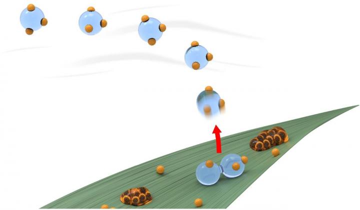 "It's important to realize these droplets are microscopic in size," explained Boreyko. "Each droplet is about the same size as the thickness of a human hair - about 50 micrometers - so this is all happening at a scale we don't notice. A 0.1 meter per second wind can support the weight of a jumping droplet, whereas a droplet directly on the leaf requires a wind of 10 meters per second - 100 times stronger to be removed. Once it's in the wind, there is, hypothetically, no limit to how far it can be carried."