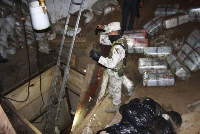image: A soil tunnel shaft is used to access a tunnel under the US-Mexico border.