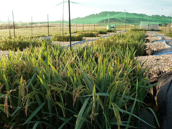 image: Rice Investigation, Communication and Education (RICE) Facility at the University of Delaware where the Seyfferth Lab conducts rice experiments in outdoor rice paddies.