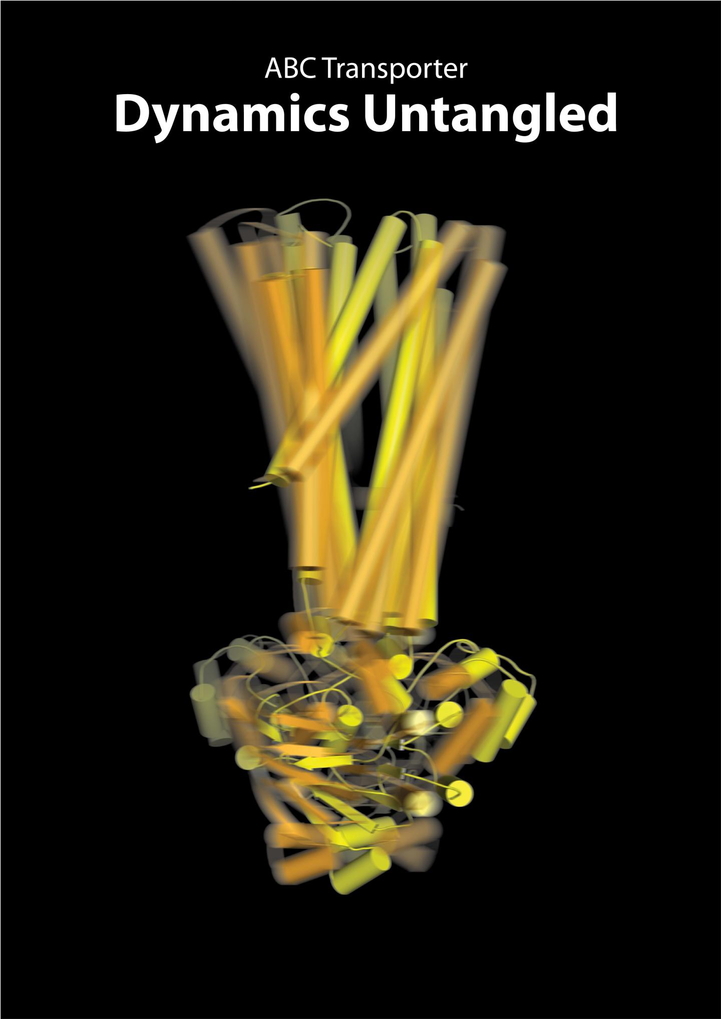 image: Superimposed snapshots of the gate function of an ABC transporter, captured with cryo-electron microcopy.