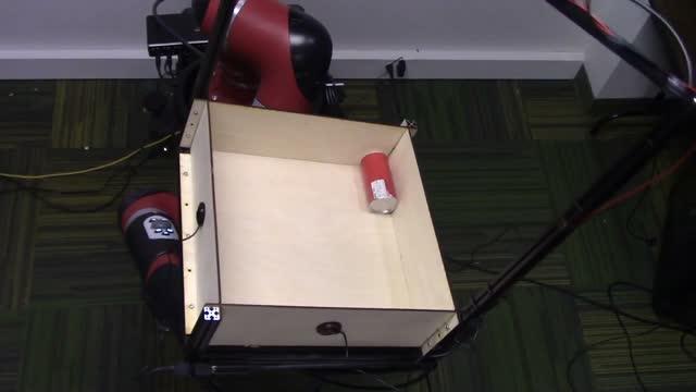 The team captured these interactions using an experimental apparatus they called Tilt-Bot -- a square tray attached to the arm of a Sawyer robot. It was an efficient way to build a large dataset; they could place an object in the tray and let Sawyer spend a few hours moving the tray in random directions with varying levels of tilt as cameras and microphones recorded each action.