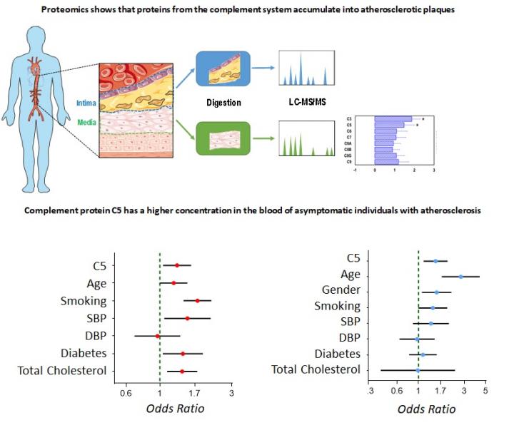 The authors measured the levels of C5, an important complement protein, in blood samples of 360 participants in the PESA CNIC-SANTANDER project. This analysis showed that the blood concentration of C5 is higher in individuals with more than 2 atherosclerotic plaques. The findings were then validated in an independent study of 400 asymptomatic men and women.