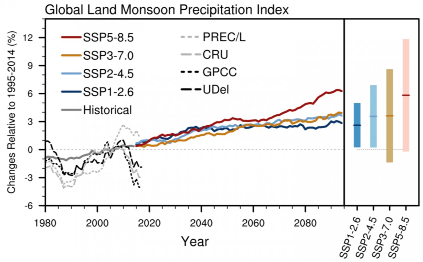 The researchers found that the global land monsoon summer precipitation increased under all scenarios, by about 2.54% and 5.75% in the lowest (SSP1-2.6) and highest (SSP5-8.5) emission scenarios, respectively. The enhancement was caused by thermodynamic responses due to increased moisture.