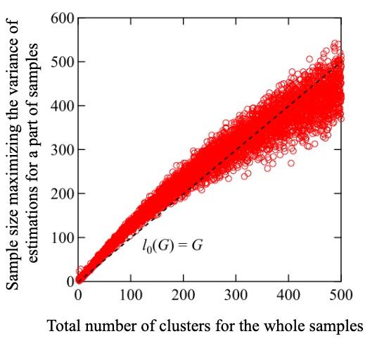 image: Estimating the variance of the number of clusters and the sample size for which it is maximum can give us an estimate of the total number of clusters for the whole sample.