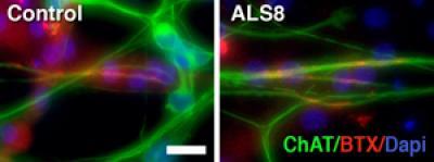 In the new work, Muotri and colleagues turned to iPSCs derived from the skin cells of patients with a familial form of ALS called ALS8 to create motor neurons that provided a novel in vitro model of the disease. iPSCs from ALS patients have been described before, but finding cellular and molecular phenotypes has proved to be a continuing challenge. The use of a familial form of ALS offered an advantage since the mutated gene could be tracked during motor neuron differentiation.