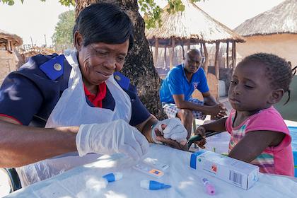 image: A study nurse performs malaria testing and treatment in villages in the Zambezi Region of Namibia, Africa, in 2017.