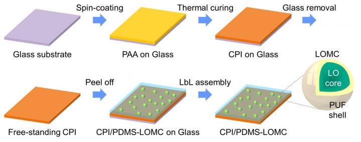 Research team at KIST fabricated linseed oil-loaded microcapsules; then, created upper-healing layers by mixing the fabricated microcapsules with silicone and coating them on colorless polyimides. In the material developed by the team, the microcapsules break when a mechanical damage occurs, then, the linseed oil leaks out and flows to the damaged area to become hardened, thereby healing the damaged area. Such self-healing capability has the advantage of being able to heal locally for local damages.