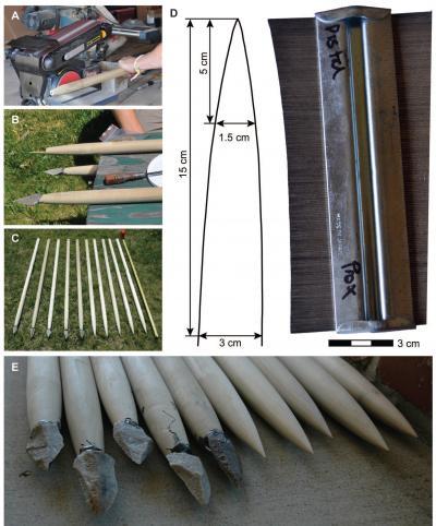 To learn if there was a "wounding" advantage between using a wooden spear or a stone-tipped spear, ASU postdoctoral researcher Jayne Wilkins, doctoral student Benjamin Schoville and coauthor Kyle Brown from the University of Cape Town, conducted controlled experiments using tipped and untipped spear replications, a calibrated crossbow and ballistics gelatin. The experiments looked at the size and shape of the "wound," penetration depth and damage done by extraction of the spear. Wilkins and Schoville are affiliated with the Institute of Human Origins, a research center of the ASU College of Liberal Arts and Sciences in the School of Human Evolution and Social Change.