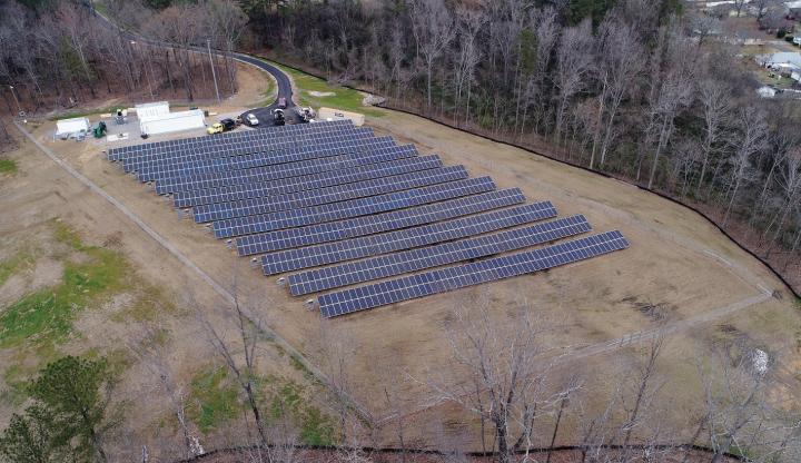 Caption: The microgrid for the Smart Neighborhood in Hoover, Alabama, consists of solar panels and a battery pack and allows homes to disconnect from the main power grid. Credit: Southern Company