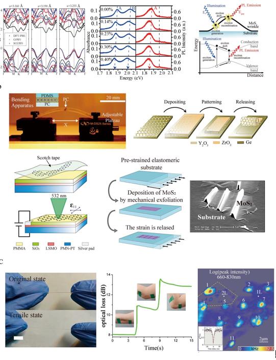In a new paper published in Light: Science & Applications, a team of scientists, led by Doctor Dangyuan Lei from Department of Materials Science and Engineering, City University of Hong Kong, China, and co-workers have written a review article to comprehensively summarized recent developments in this burgeoning field. In this review paper, the traditional macroscopic strain field theory is introduced firstly. Then, the band structure changes of strained 2D semiconductors (TMDCs) and strained graphene are discussed, while the optical responses observed under different kinds of strain fields are reviewed. Subsequently, this paper summarizes the strain engineering techniques that can apply different kinds of strains to specific 2D materials. At the end of this article, the diverse applications in optical devices, optoelectronics and other photonics applications are presented, and the existing problems in this field and their future development are prospected, respectively.