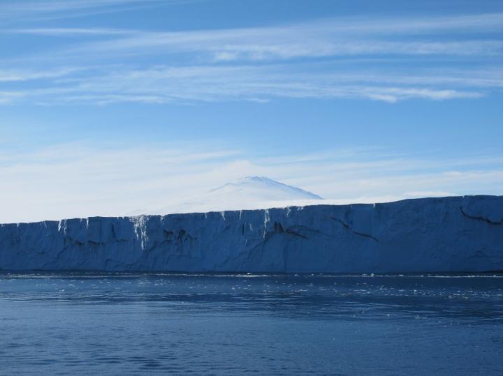 image: The Nansen Ice Shelf with Mount Melbourne in the background.