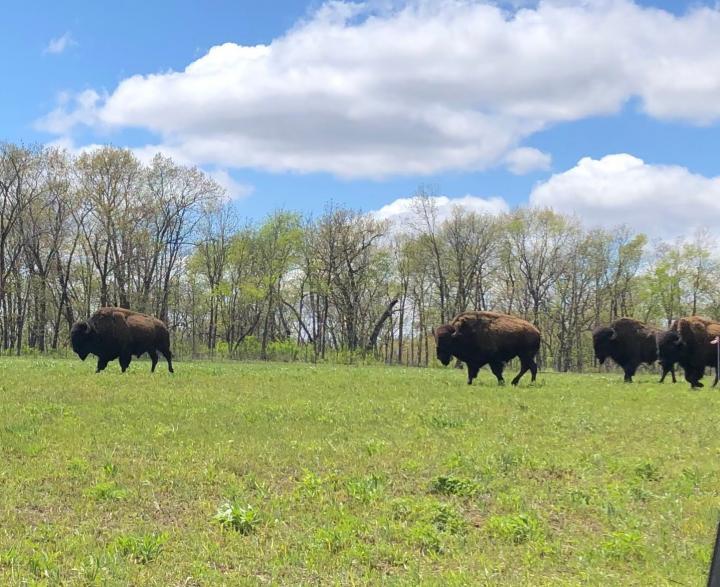 image: The new study found that, when restoring habitat, the effects of management strategies on animal communities were six times stronger on average than the effects of plant biodiversity. One such management strategy in prairie restoration is the reintroduction of bison, seen here at Nachusa Grasslands.