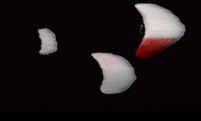 “Our experiments showed that when a binary collision occurs, the barchan that was originally downstream, i.e. in front, expelled a dune of an approximately equal mass to that of the barchan upstream, i.e. behind,” Franklin said. “The first impression was that the upstream barchan passed over the other barchan like a wave, but the use of colored grains helped us show this didn’t happen. Actually, the upstream barchan entered the downstream barchan, which became too large and released a mass more or less equal to the mass received.”