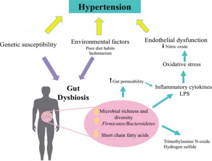 Hypertension is a risk factor for developing cardiovascular disease and is one of the leading causes of death globally. Gut microbiota have been found to influence intestinal development, barrier integrity and function, body metabolism, the immune system and the central nervous system. A microbial imbalance affects metabolism, which may lead to metabolic diseases like hypertension, obesity, and type 2 diabetes.