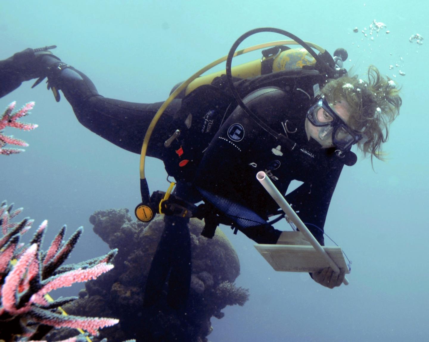 image: 'There are efforts to use drones or satellites to collect this information, but you cannot get the high resolution needed to assess the vital complex architecture of reefs unless you are in the water,' says UCI biologist Joleah Lamb, pictured.