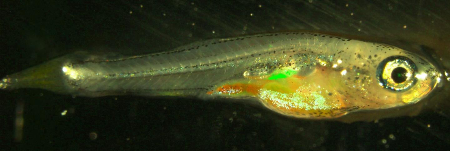 image: Cells transmitting information to the next generation in fish (highlighted green) do not erase memory attached to DNA as humans do.