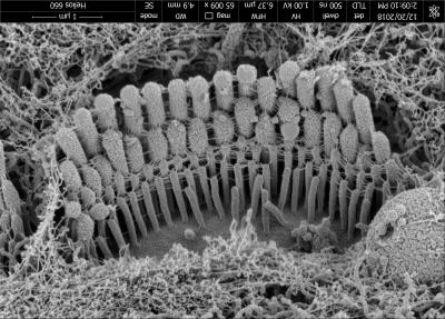 Hair bundles are precisely arranged cellular structures deep within the spiral cavity of the inner ear. Together, they convert vibrational energy into electrical signals in the brain that translate into the sensation of hearing. Once they're lost - whether by loud noise, toxins, disease or aging - they do not naturally regenerate in people and other mammals.