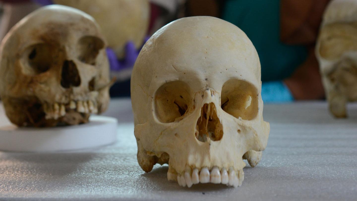 image: Skulls in the lab of Ann Ross at NC State University. Ross is a biological anthropologist and forensic science researcher.