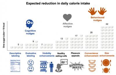 In a meta-analysis of real-life experiments drawn from food science, nutrition, health economics, marketing and psychology, the authors find that behavioural nudges - facilitating action rather than providing knowledge or inducing feelings - can reduce daily energy intake by up to 209 kcal, the same number of calories as in 21 cubes of sugar.