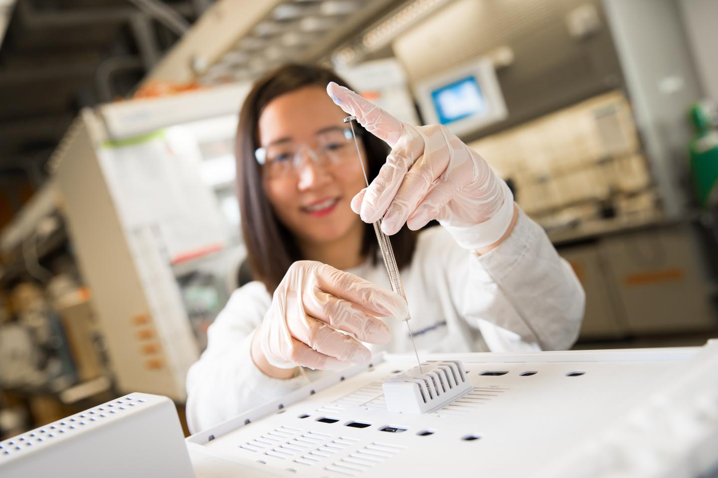 image: Chengcheng Fang uses a technique that UC San Diego researchers invented to quantify inactive lithium.