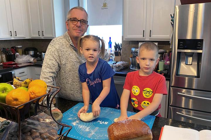 image: Dr. David Turner cooks with his kids to help them develop long term lifestyle habits and healthy eating behaviors. Turner published a study linking high levels of AGEs from processed food in the body and breast cancer risk.