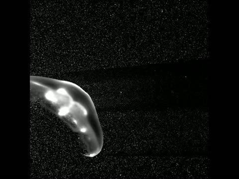 video: High-speed camera captures jellyfish swimming through a laser sheet with tracer particles.