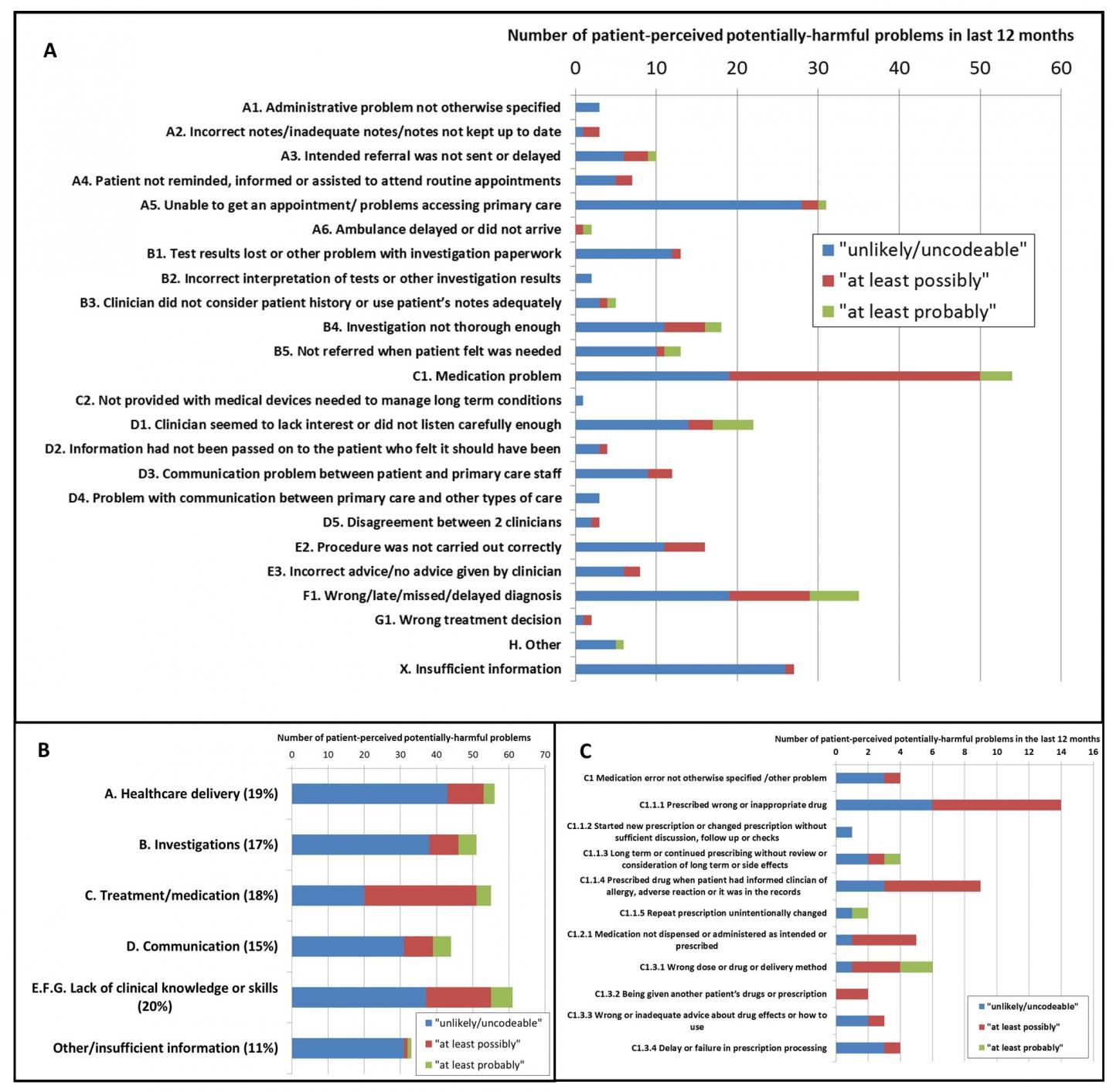 Around 20% of the problems reported by patients involved prescribing of medicines and 12% involved late, and missed or wrong, diagnoses.