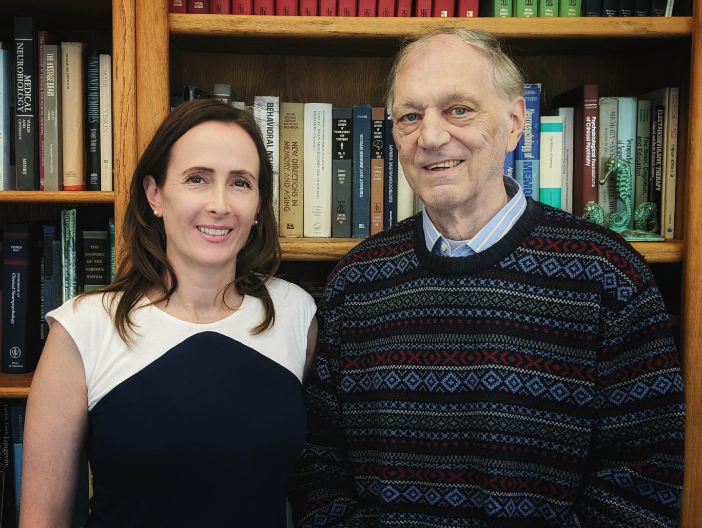 image: Drs. Christine Smith and Larry Squire study memory and learning. On the shelf behind Squire is a replica of a sea horse. The brain's hippocampus -- crucial in memory -- is named based on the ancient Greek term for sea horse.
