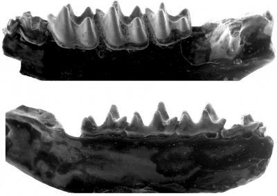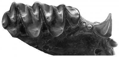 This is a jawbone from the newly described sucker-footed bat Phasmatonycteris phiomensis, less than half an inch in length and ~30 million years old